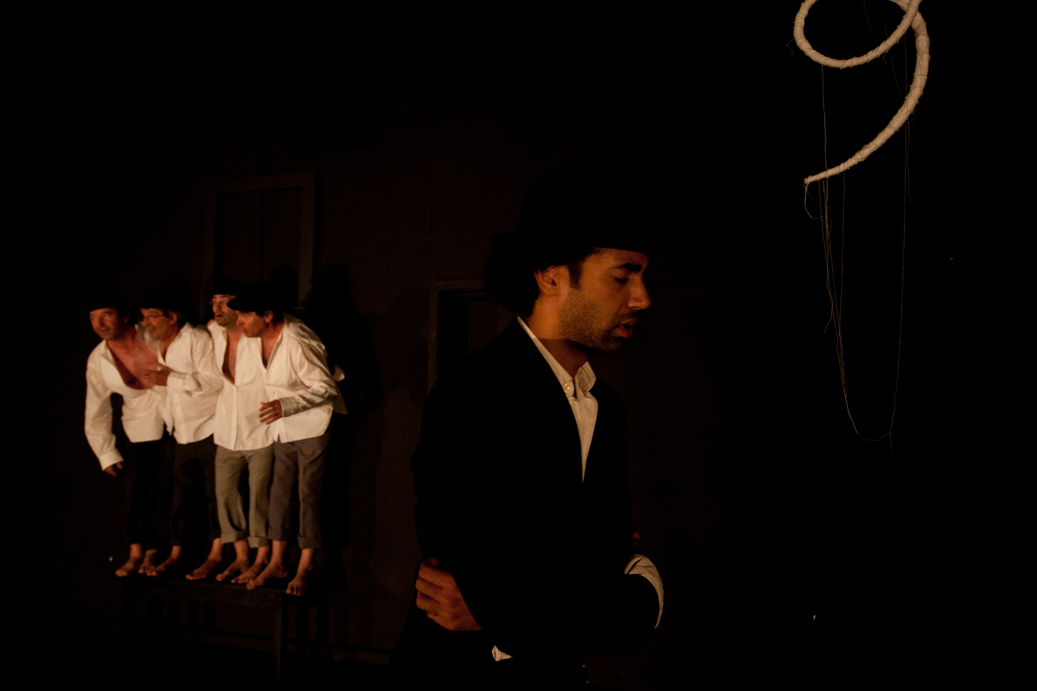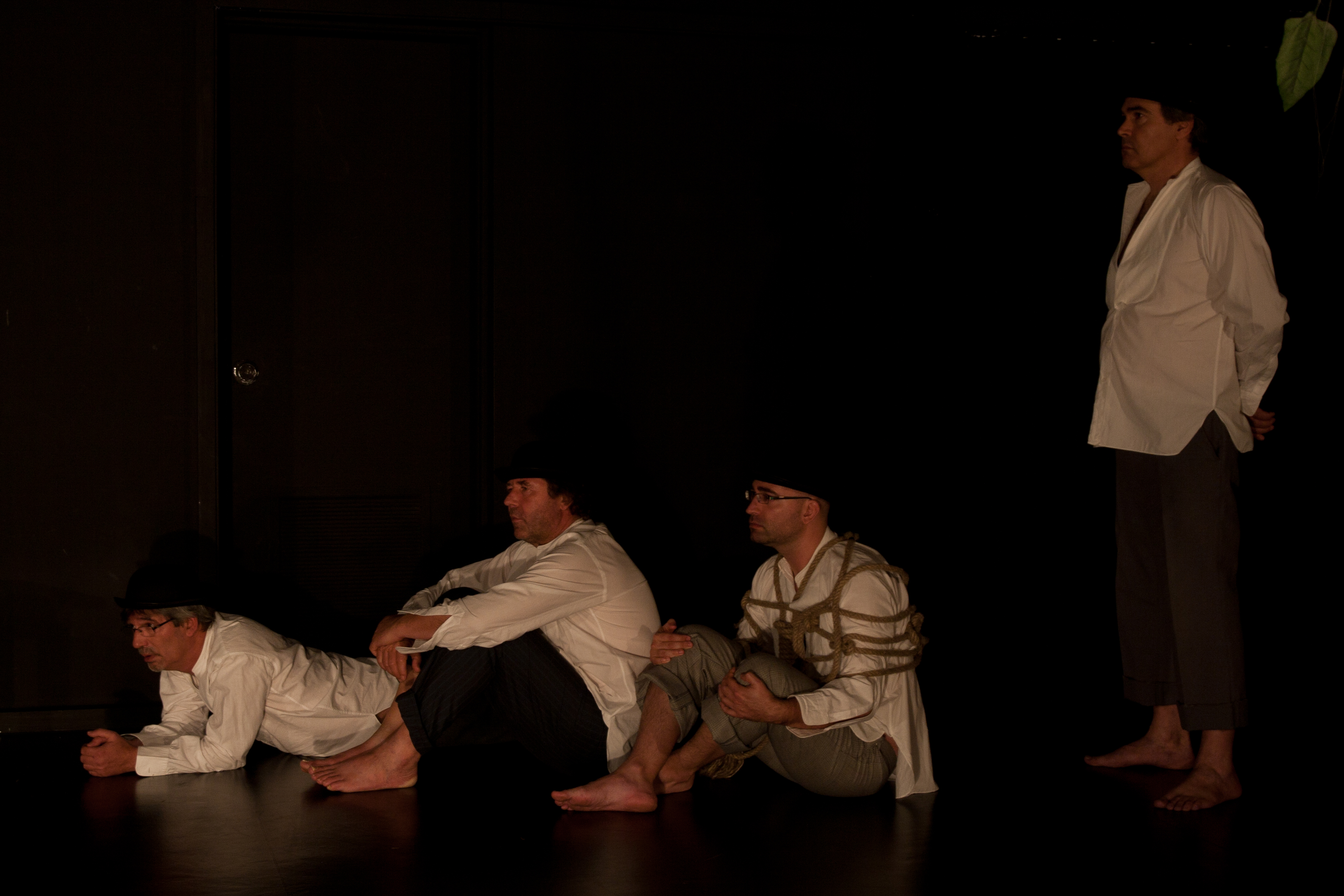 O objetivo do presente relatório é dar a conhecer o meu processo de compreensão do que significa ser ator na conceção teatral que me foi apresentada no mestrado. Analisei esta questão recorrendo aos termos «autoconhecimento», «moral» e «presença» e refletindo também sobre a forma como, não podendo ser atriz, fui cocriadora de um espetáculo d’A PESTE. A pesquisa teve como base a construção e preparação do espetáculo Didi e Gogo: Cantata com Prelúdio e Fugas, cujo texto consistiu na adaptação de várias peças de Samuel Beckett.